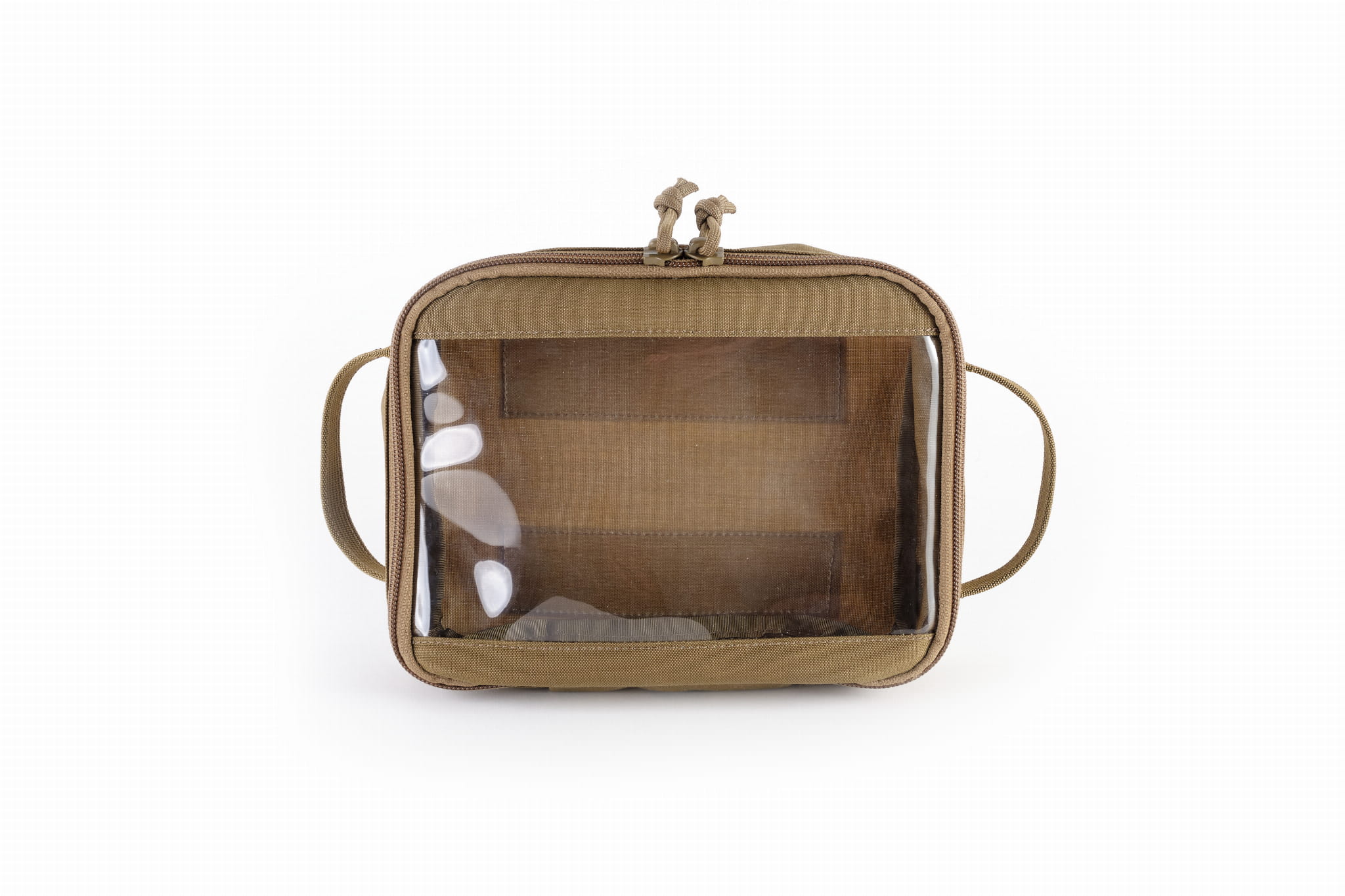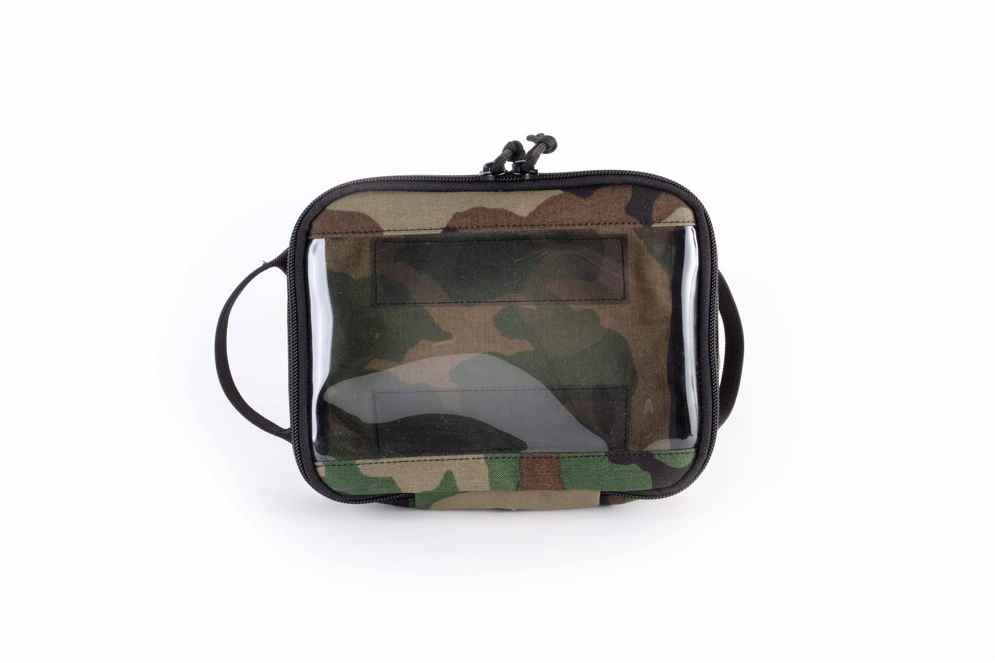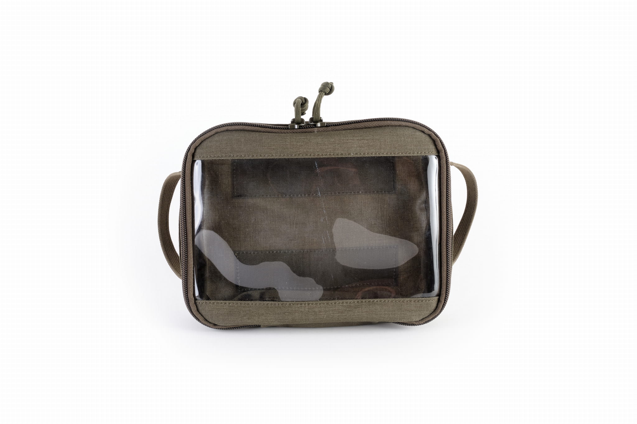 A simple pocket fastened by a two-way YKK zipper, with a front window made out of foil. This solution allows easy organization of the interior.